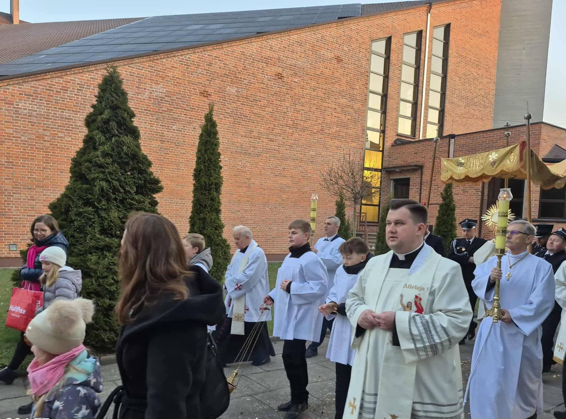 Mszą świętą wraz z procesją rezurekcyjną sprawowaną w Niedzielę Wielkanocną o 6:00 ogłosiliśmy zmartwychwstanie Chrystusa. Uroczystej rezurekcji w oprawie asysty parafialnej i ochotniczej straży pożarnej przewodniczy ksiądz proboszcz Stanisław Siurdyga.
