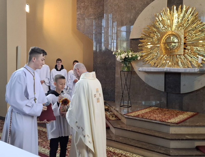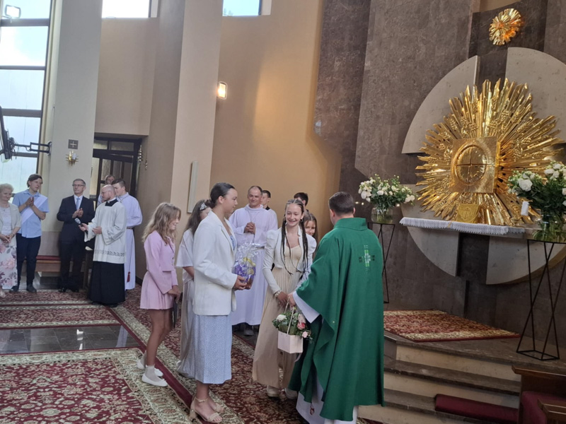 W lipcu swoje imieniny obchodzą nasi wikariusze ksiądz Kamil i ksiądz Jakub. W intencji solenizantów modliliśmy się w czasie Mszy Świętej. Okolicznościowe bukiety kwiatów i życzenia złożyły poszczególne osoby i delegacje.