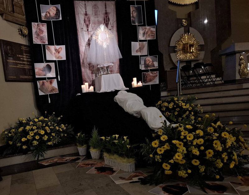 Czas Triduum sacrum to czas szczególnych znaków które towarzyszą nam w liturgii ale także w wystroju przestrzeni liturgicznej: Ciemnicy, Grobu Pańskiego, krzyża adoracji, obnażonego ołtarza i pustego tabernakulum.